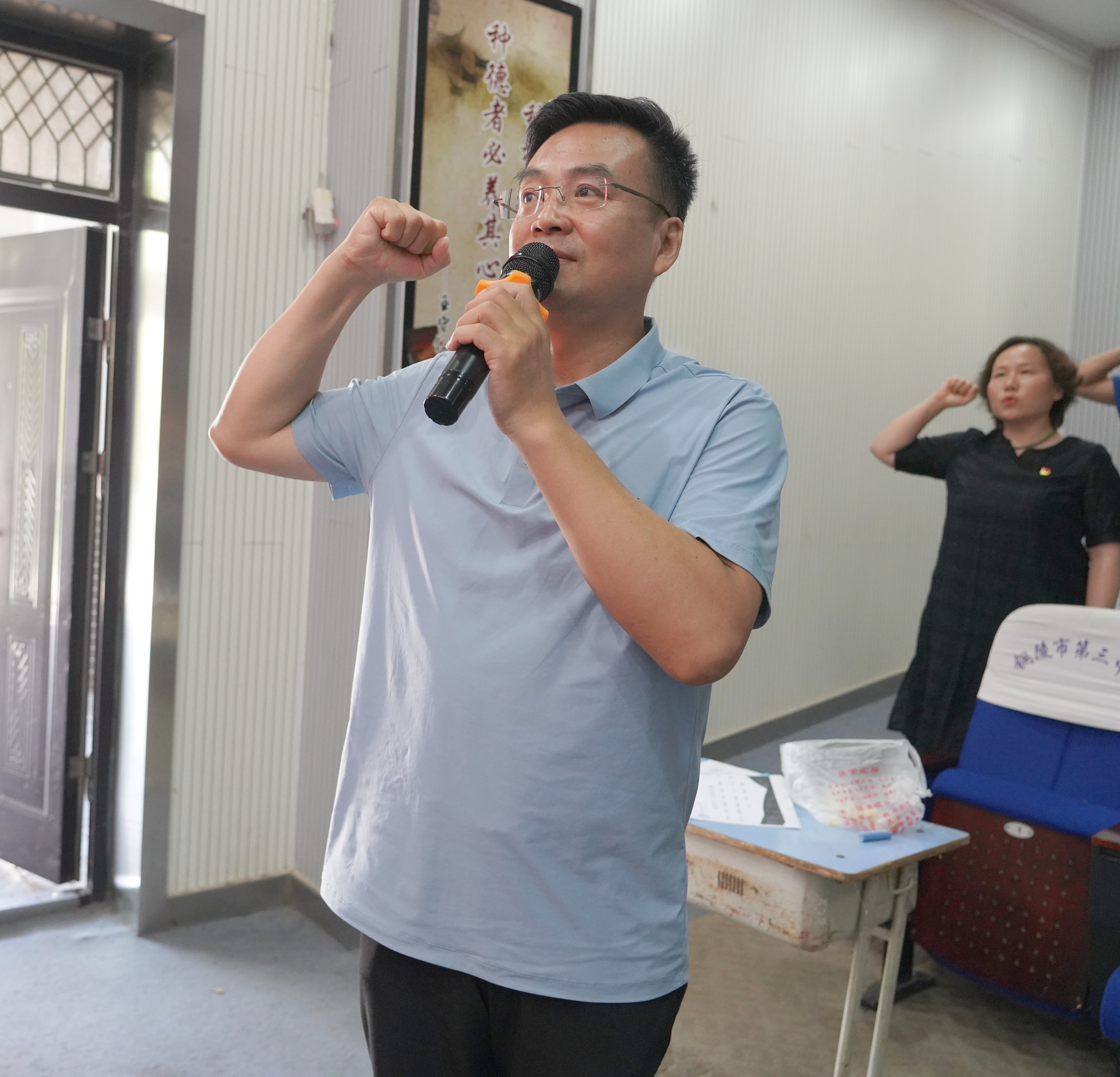 在黨員過“政治生日”儀式上,黨委委員、工會主席梁波帶領全場黨員教師重溫入黨誓詞。校領導班子成員為黨員教師代表贈送了政治生日紀念卡和相關書籍,表達了對黨員同志政治生日的祝福和殷切期望,希望黨員同志務必銘記這個光榮的日子,牢記自己的政治身份。