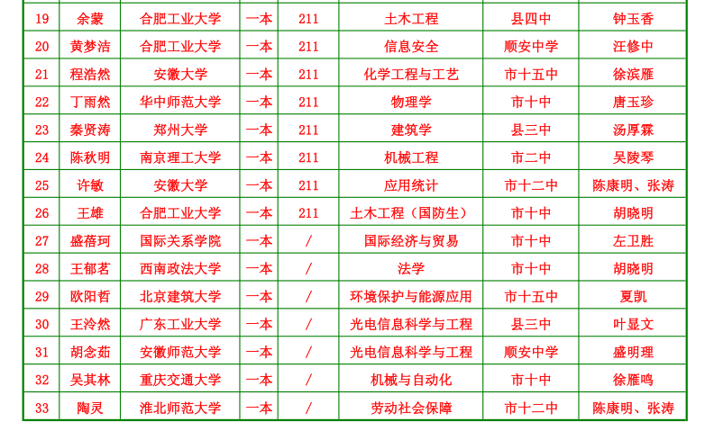 附:銅陵市第三中學(xué)首屆“實(shí)驗(yàn)小班”高考錄取結(jié)果