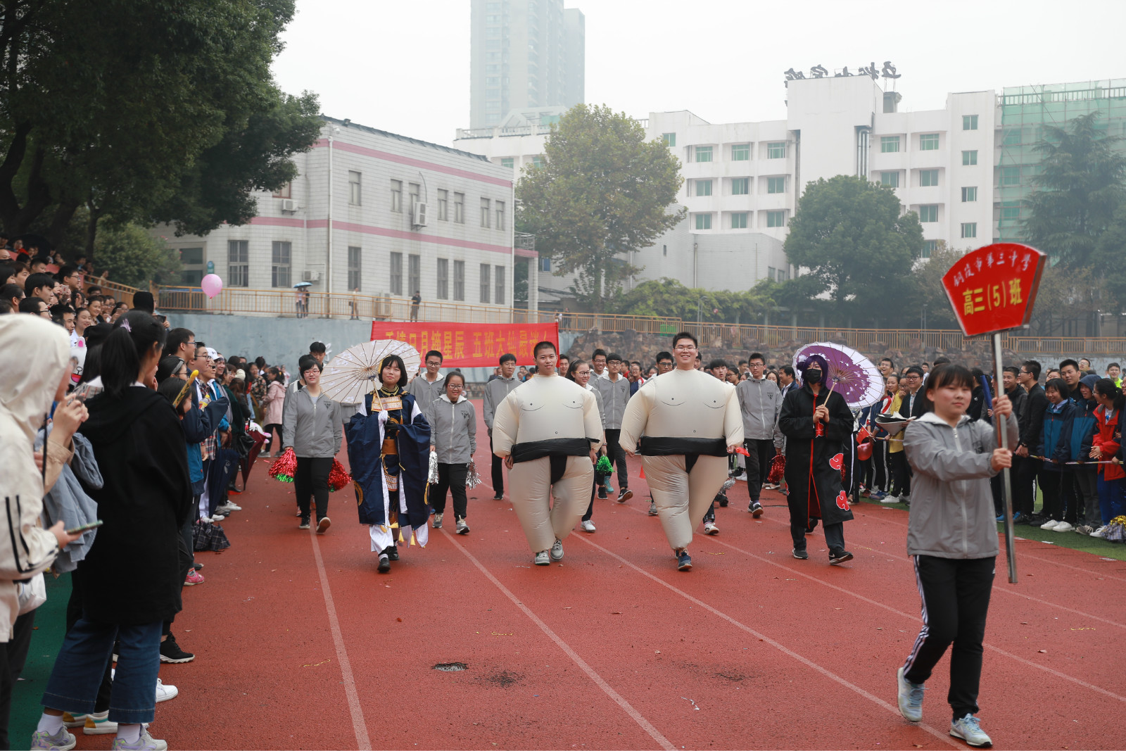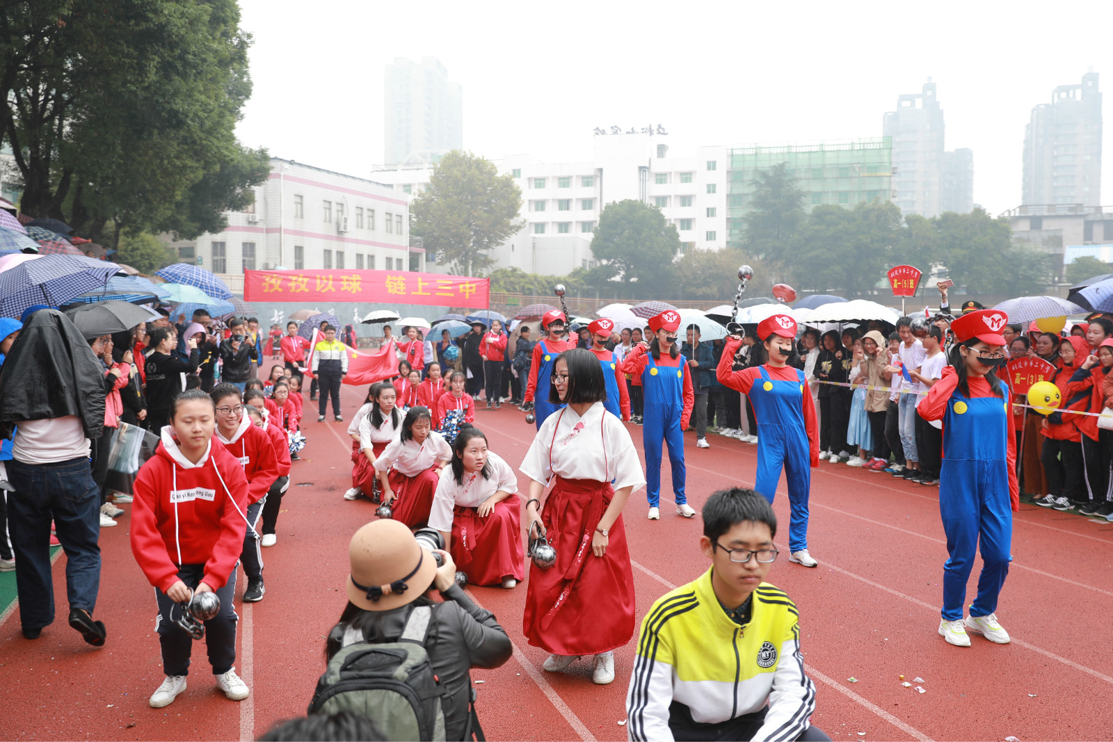 上午八點(diǎn)三十分,運(yùn)動(dòng)會(huì)開幕式正式開始。伴隨著嘹亮激昂的運(yùn)動(dòng)員進(jìn)行曲,國(guó)旗護(hù)衛(wèi)隊(duì)邁著整齊的步伐莊嚴(yán)地走過主席臺(tái),接受全校師生的檢閱,緊隨其后的是校旗以及彩旗隊(duì)。最后登場(chǎng)的是56支方陣代表隊(duì),56個(gè)班級(jí),56個(gè)項(xiàng)目,56種演繹,56篇樂章。每一列方陣都是銅陵三中奮發(fā)、創(chuàng)新、進(jìn)取的集中體現(xiàn)。各班之前仔細(xì)研究建議表演的體育運(yùn)動(dòng)項(xiàng)目,都做了大量的精心準(zhǔn)備,其中既有傳統(tǒng)項(xiàng)目也有西洋項(xiàng)目,種類繁多,表演形式多種多樣,他們身著特色的服裝,或手拿籃球足球、或不斷變換花球、或點(diǎn)燃小火箭、或放飛氣球,活力舞姿謳歌多彩青春,抒發(fā)愛國(guó)情懷,滿懷激情地喊著口號(hào),表達(dá)對(duì)未來的無限向往,在全校師生的矚目下走過主席臺(tái),贏得在場(chǎng)師生的陣陣喝彩。