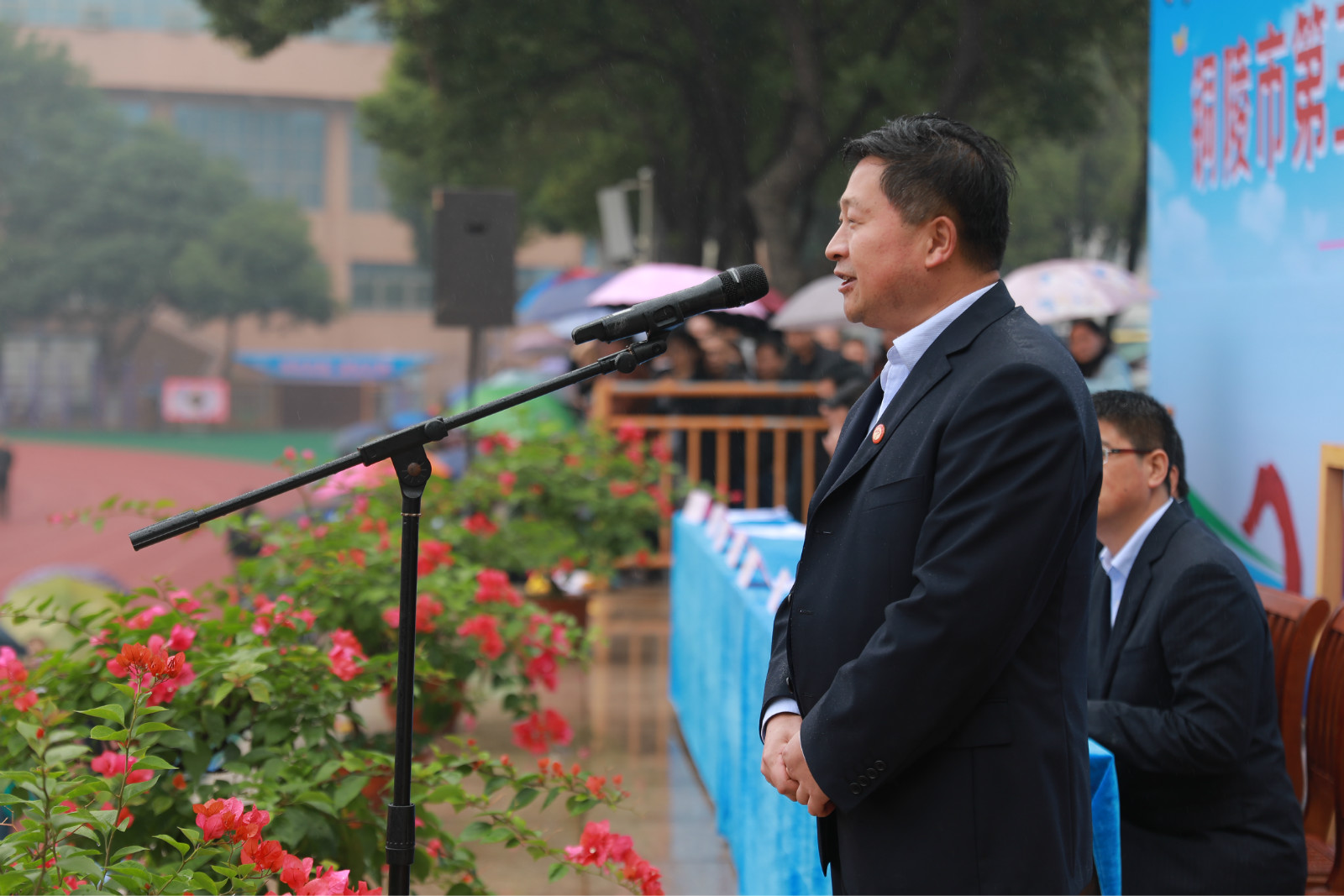 校黨委書記、校長(zhǎng)鐘士標(biāo)宣布銅陵三中第53屆校運(yùn)會(huì)開幕