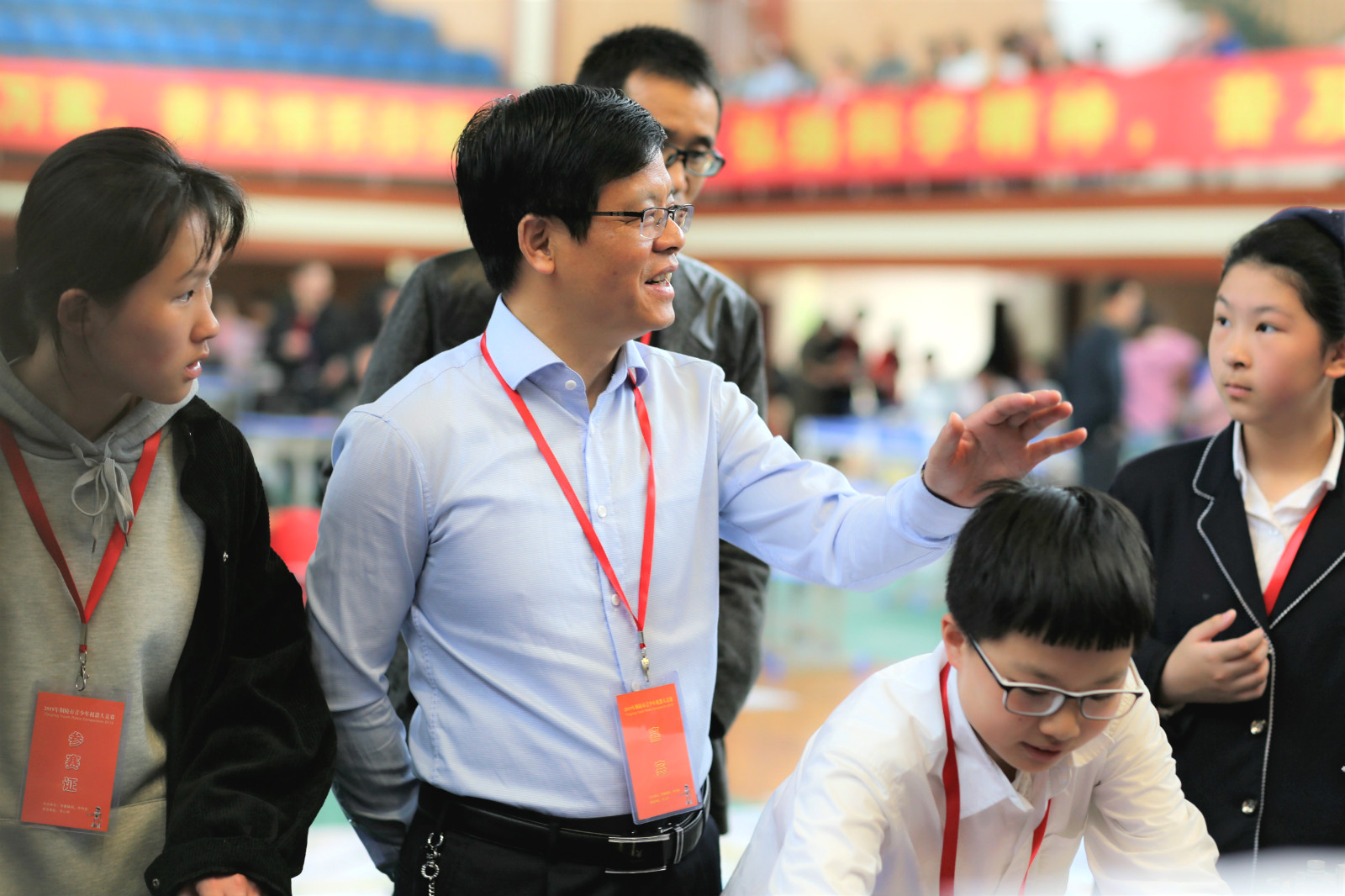 比賽間隙,市教體局黨委書記、局長谷越同志來現(xiàn)場觀摩了比賽并和選手們愉快交流,在巡視過程中,他仔細詢問了工作人員的相關(guān)事項,并對辛苦付出的工作人員表示感謝。