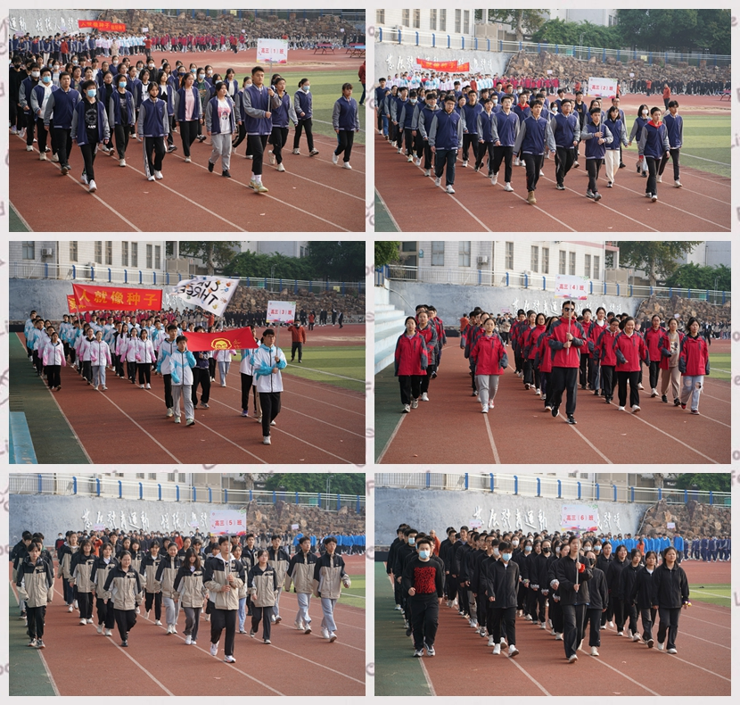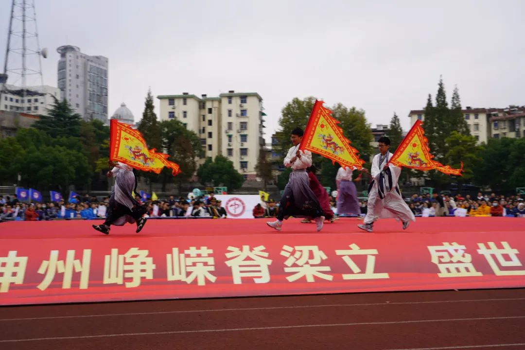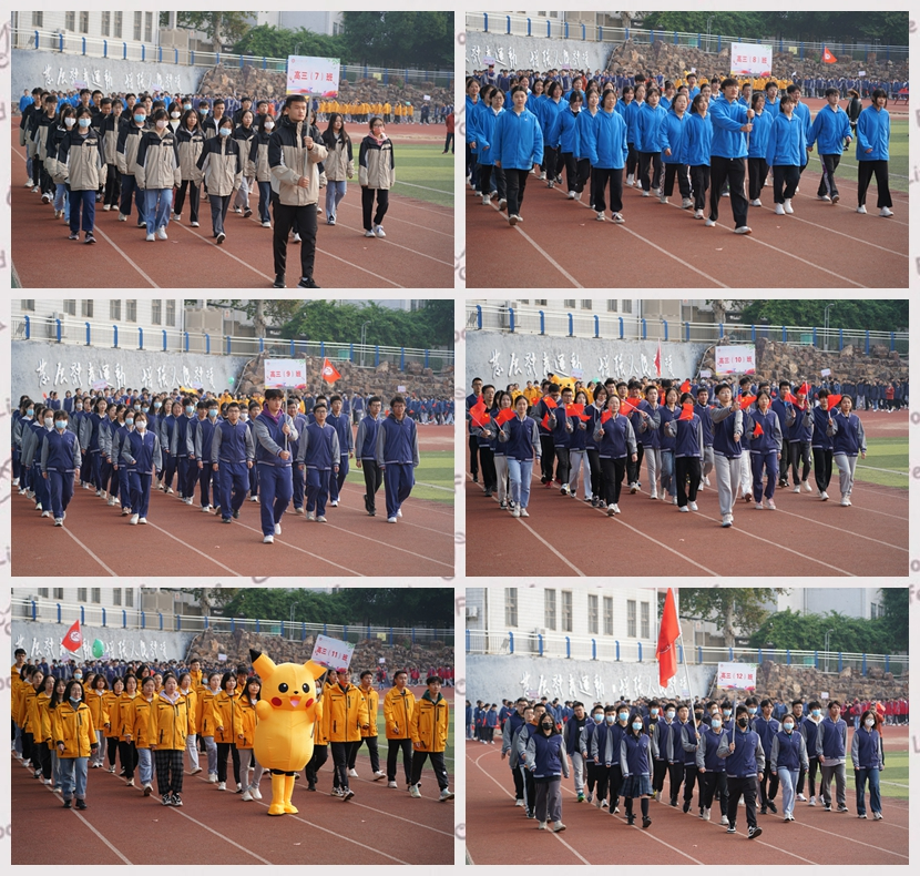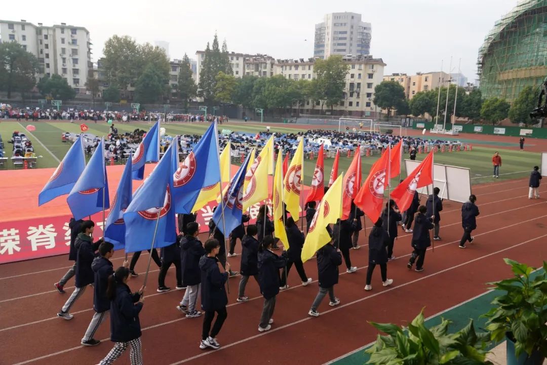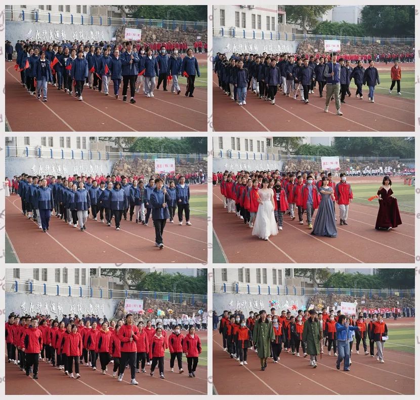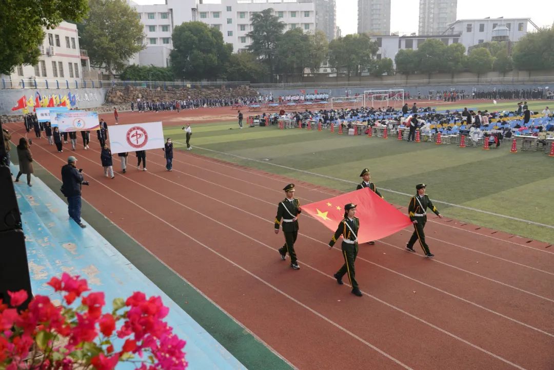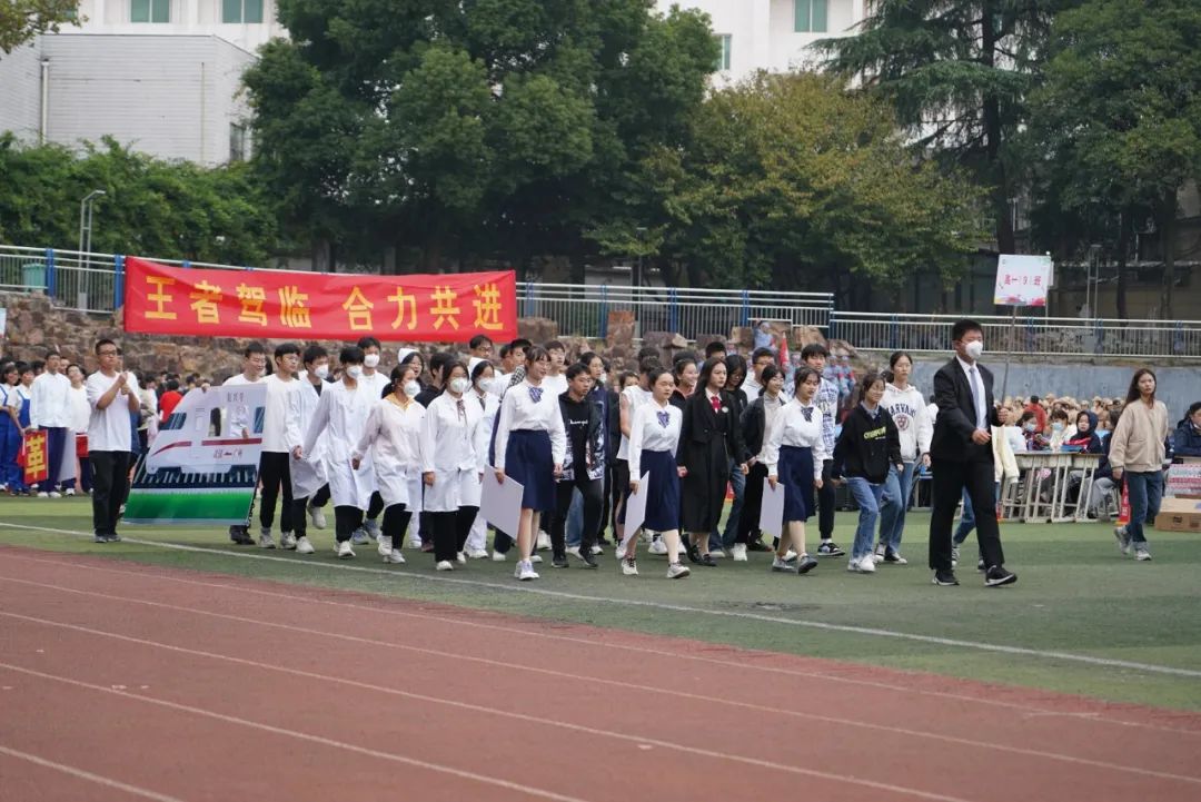 鮮衣怒馬少年時,不負(fù)韶華行且知。伴著雄壯的樂聲,國旗隊、會徽隊、彩旗隊、各班級方陣依次走過主席臺接受檢閱。