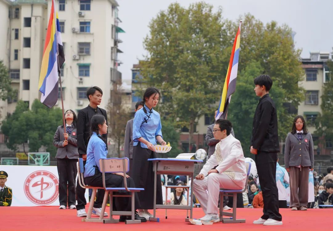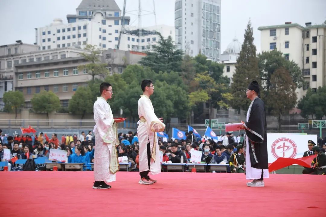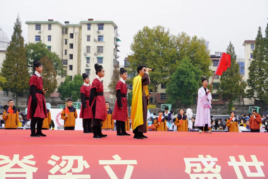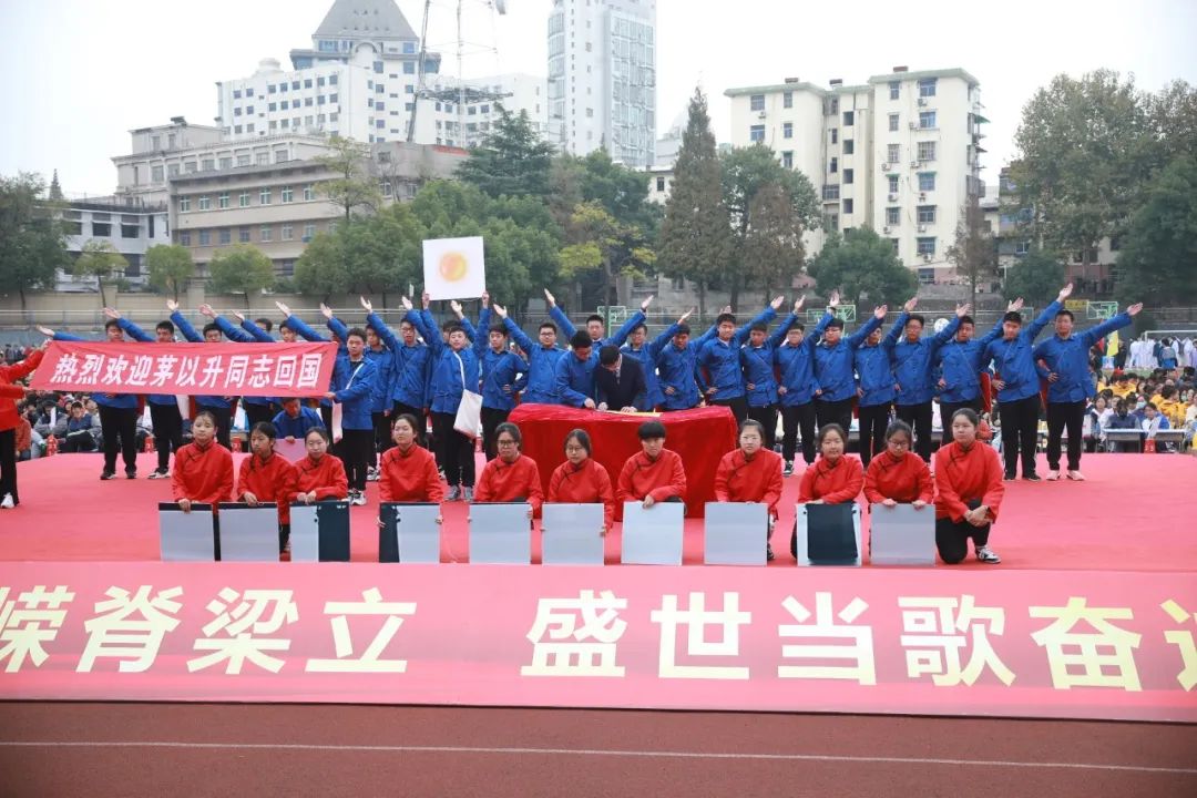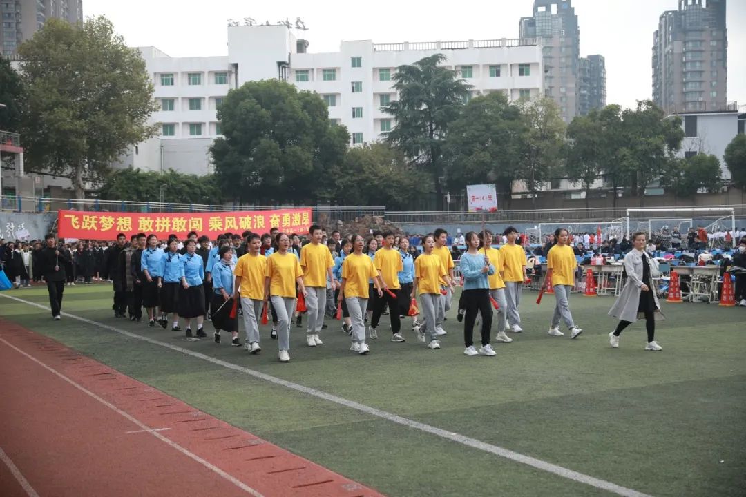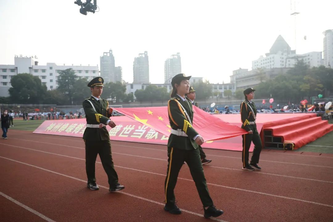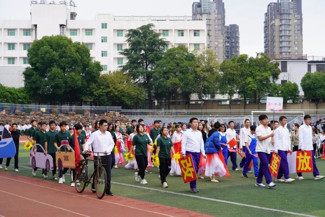 鮮衣怒馬少年時,不負(fù)韶華行且知。伴著雄壯的樂聲,國旗隊、會徽隊、彩旗隊、各班級方陣依次走過主席臺接受檢閱。