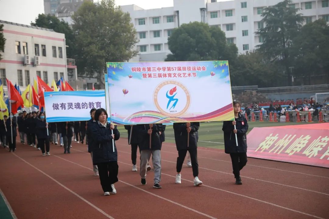 秋風(fēng)起,云飛揚(yáng)。此刻的校園,鮮花與彩旗共舞,青春與激情齊飛。11月4日上午,銅陵三中第57屆田徑運(yùn)動會暨第三屆體育文化藝術(shù)節(jié)隆重開幕。本次活動集體育、文化、藝術(shù)為一體,全面展示我校學(xué)生風(fēng)采。