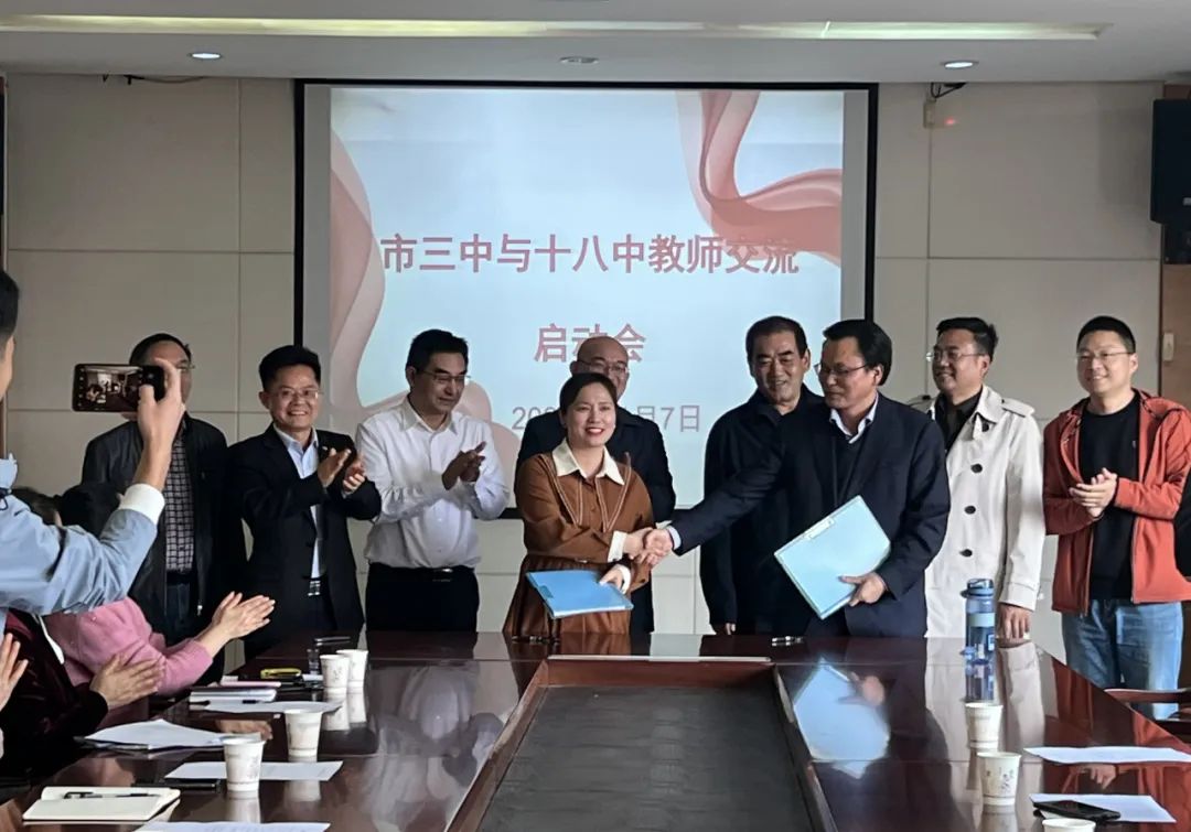 查來(lái)軍稱贊了市三中的人文底蘊(yùn)、辦學(xué)質(zhì)量、校園建設(shè)和對(duì)外宣傳,介紹了市十八中的變遷歷史、辦學(xué)理念、特色課程和未來(lái)規(guī)劃,表達(dá)了對(duì)教師交流工作的大力支持。