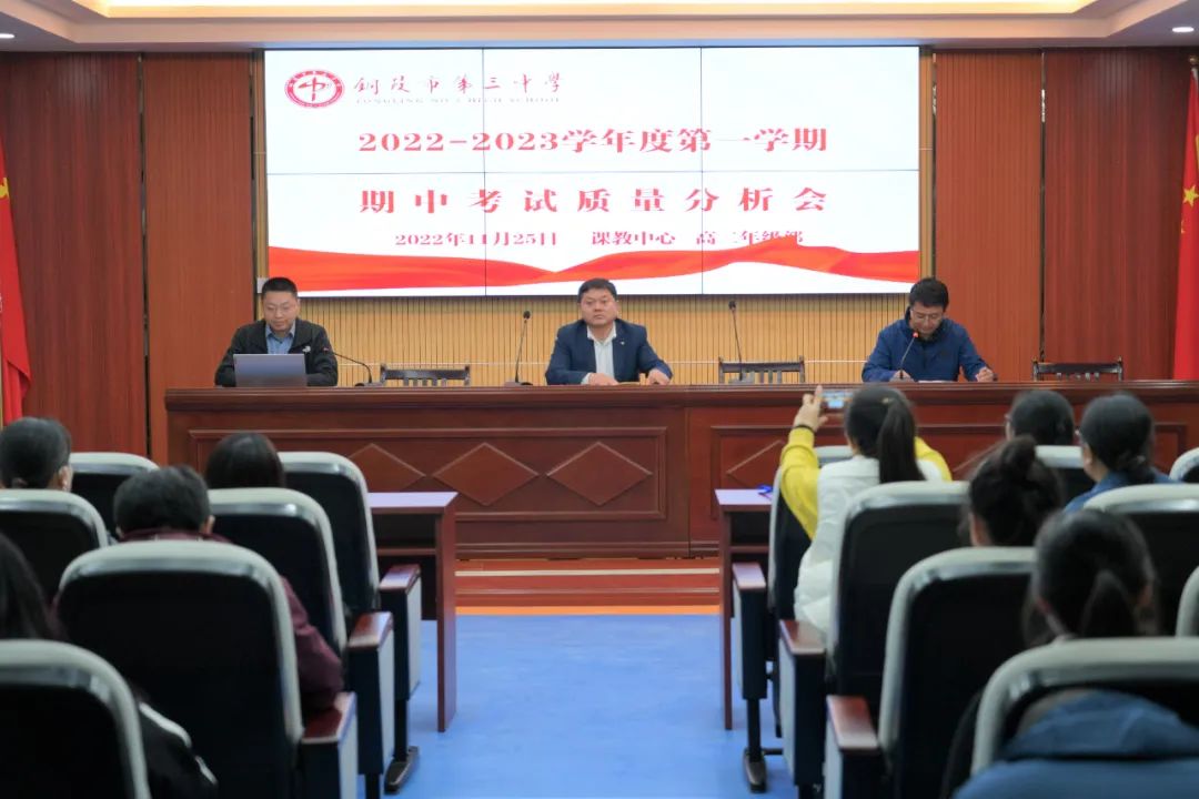 教學質量是學校發(fā)展的生命線,為做好高一、高二年級期中聯(lián)考質量分析和總結工作,及時調整教育教學策略,進一步提質增效,11月25日下午,我校課教中心聯(lián)合高一、高二年級部分別在多功能廳和躬行樓五樓會議室同時召開期中聯(lián)考質量分析會。校黨委副書記、副校長王合進,課程與教學中心主任徐盼和王俊朝,全體高一、高二教師參會,會議分別由高一年級部長肖青和高二年級部長方進主持。
