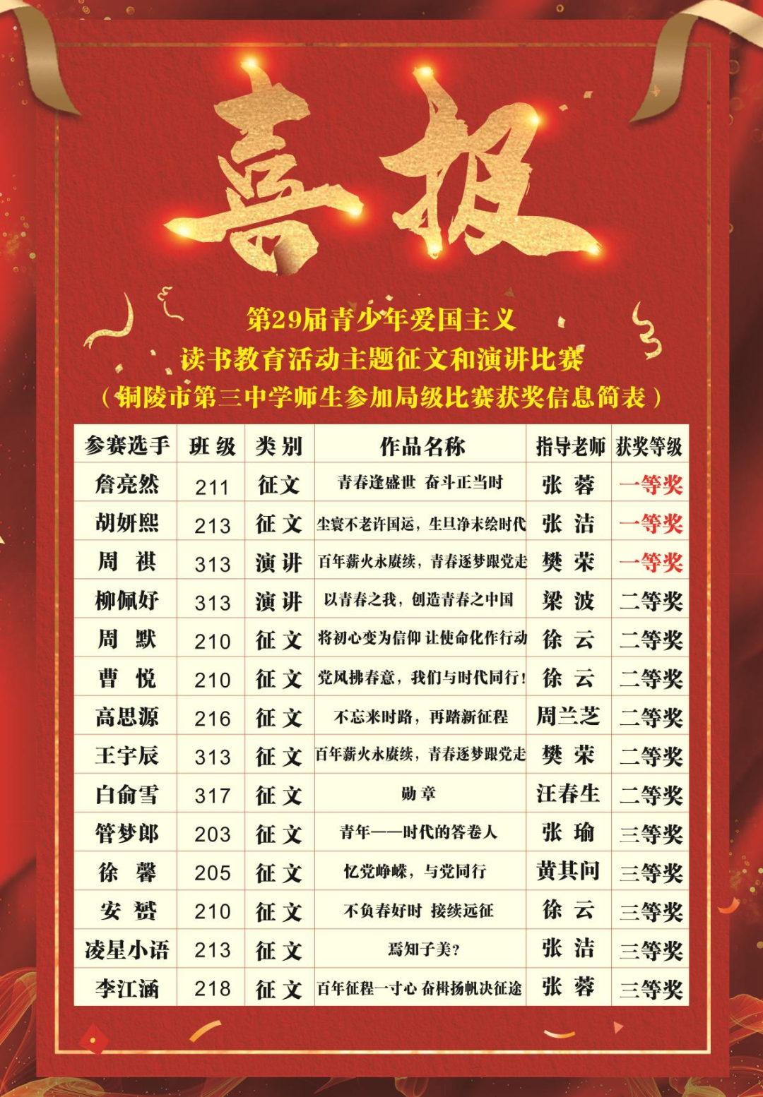 第29屆青少年愛國主義讀書教育活動(dòng)的開展,使三中師生更加堅(jiān)定理想信念,與新時(shí)代同向同行、共同前進(jìn),不負(fù)青春韶華,接續(xù)遠(yuǎn)征!