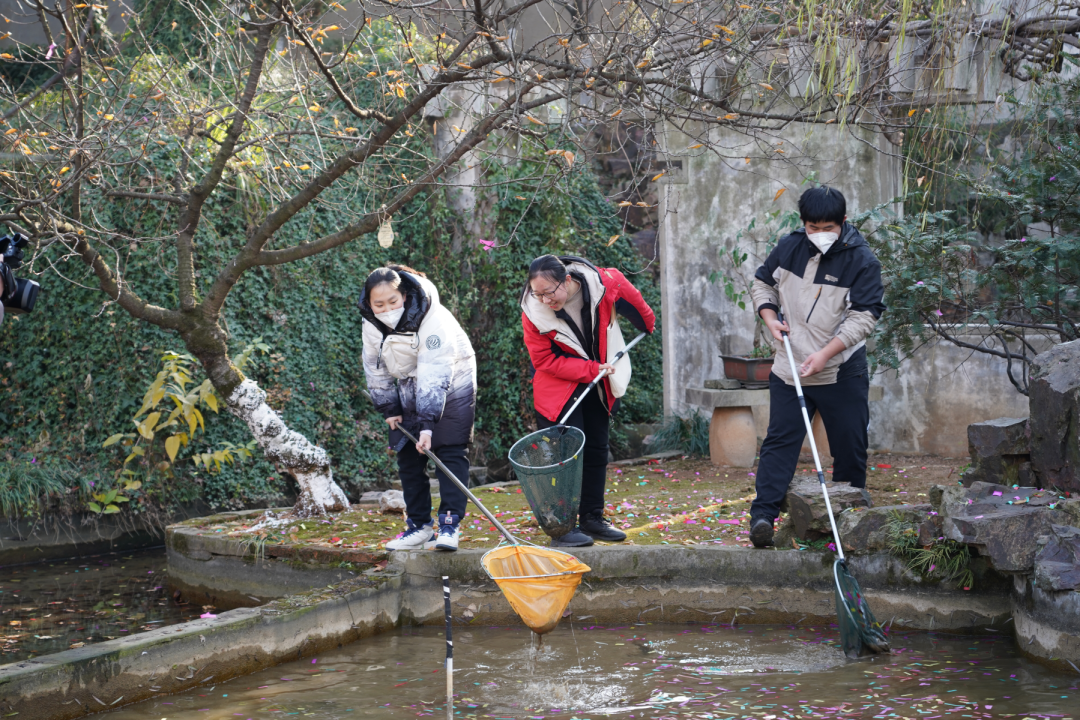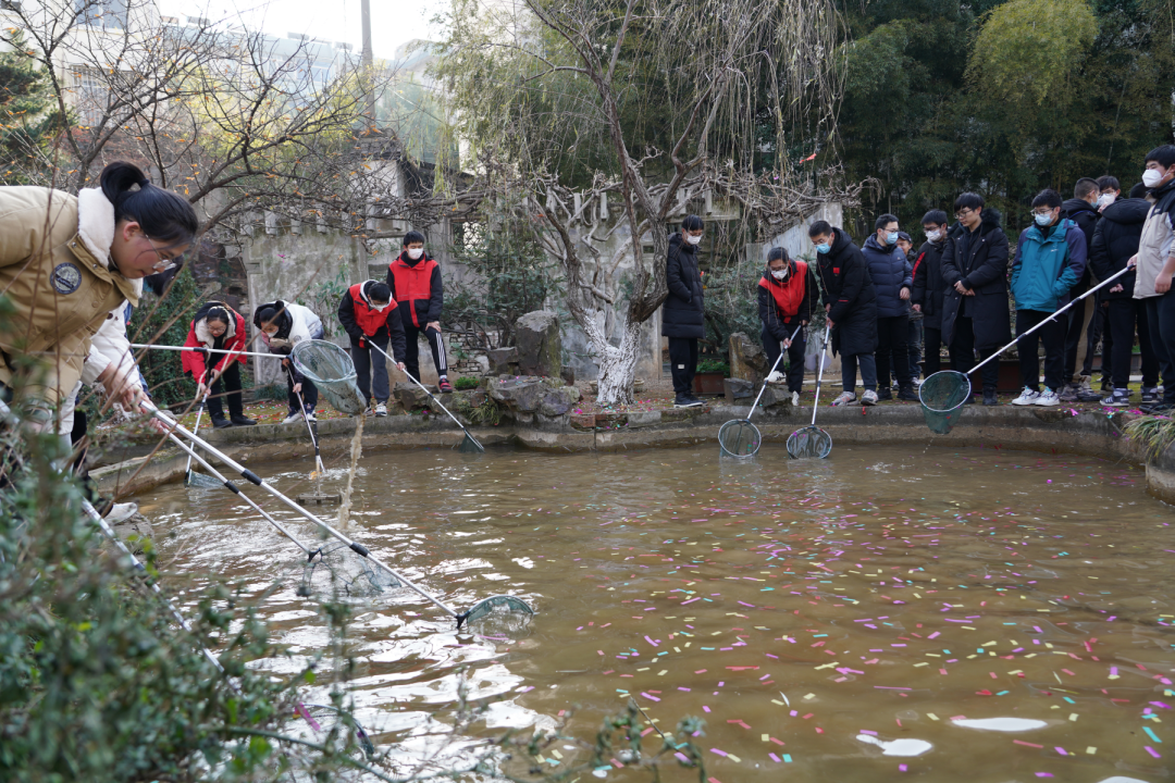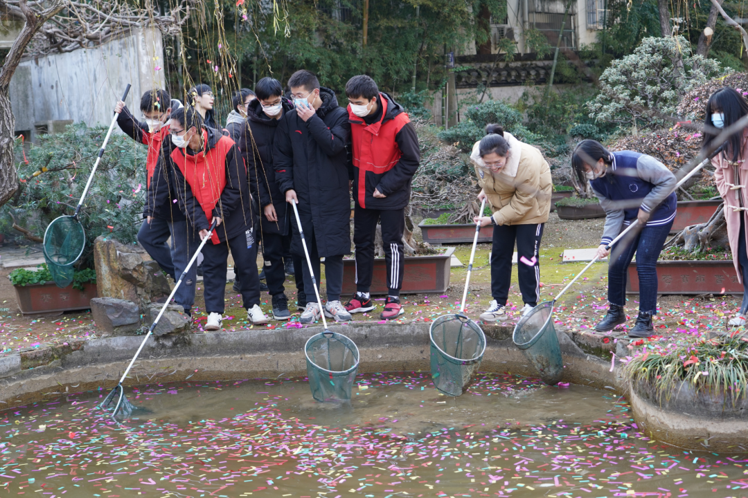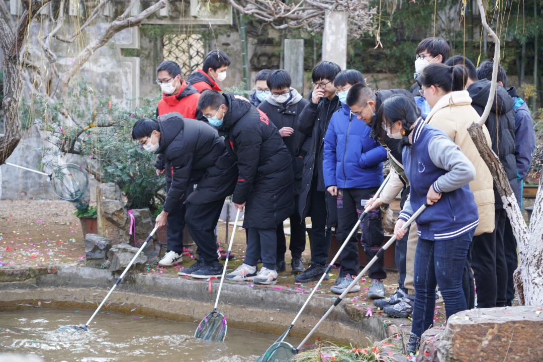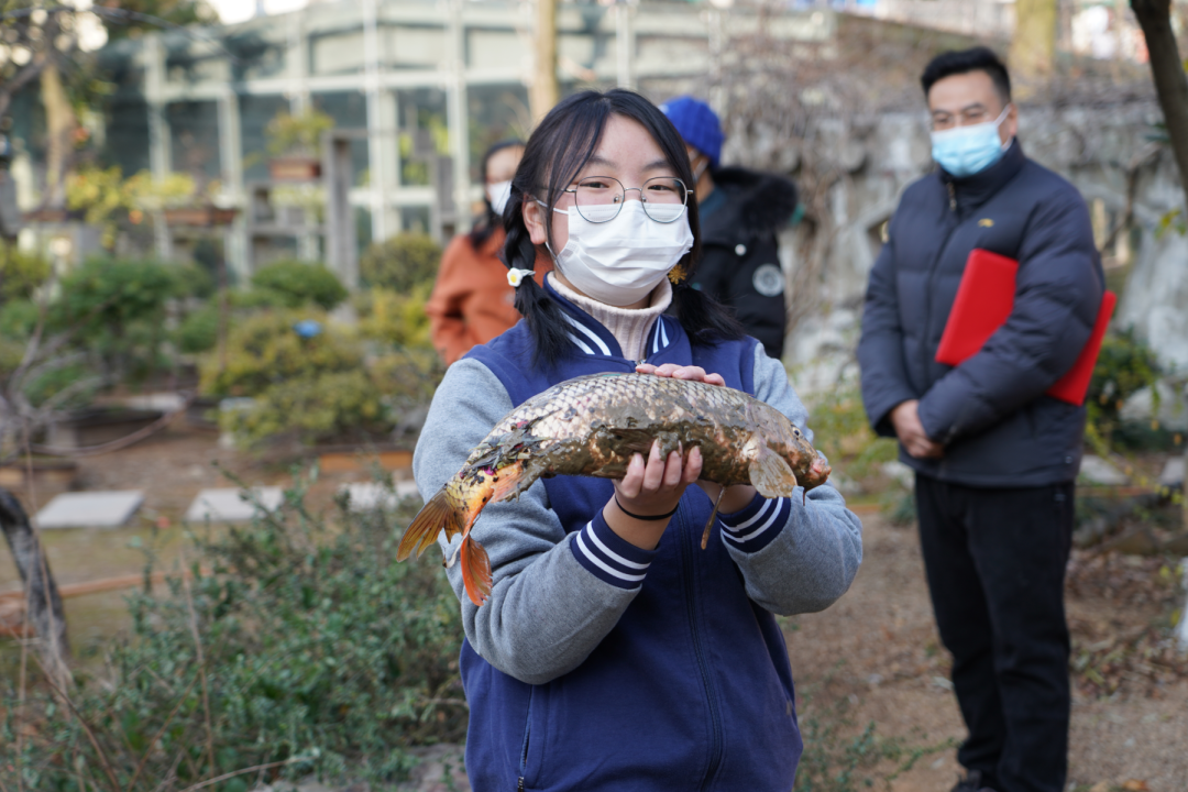 12月31日,2022年的最后一天,暖陽高照,升騰了銅陵三中師生們火熱的心。下午兩點(diǎn)半,植物園池塘邊和小菜園擠滿師生,人群中不時傳來喝彩聲和歡笑聲,銅陵三中“‘漁’你同行 共創(chuàng)明天”捕魚和蔬菜采摘活動正式拉開帷幕。