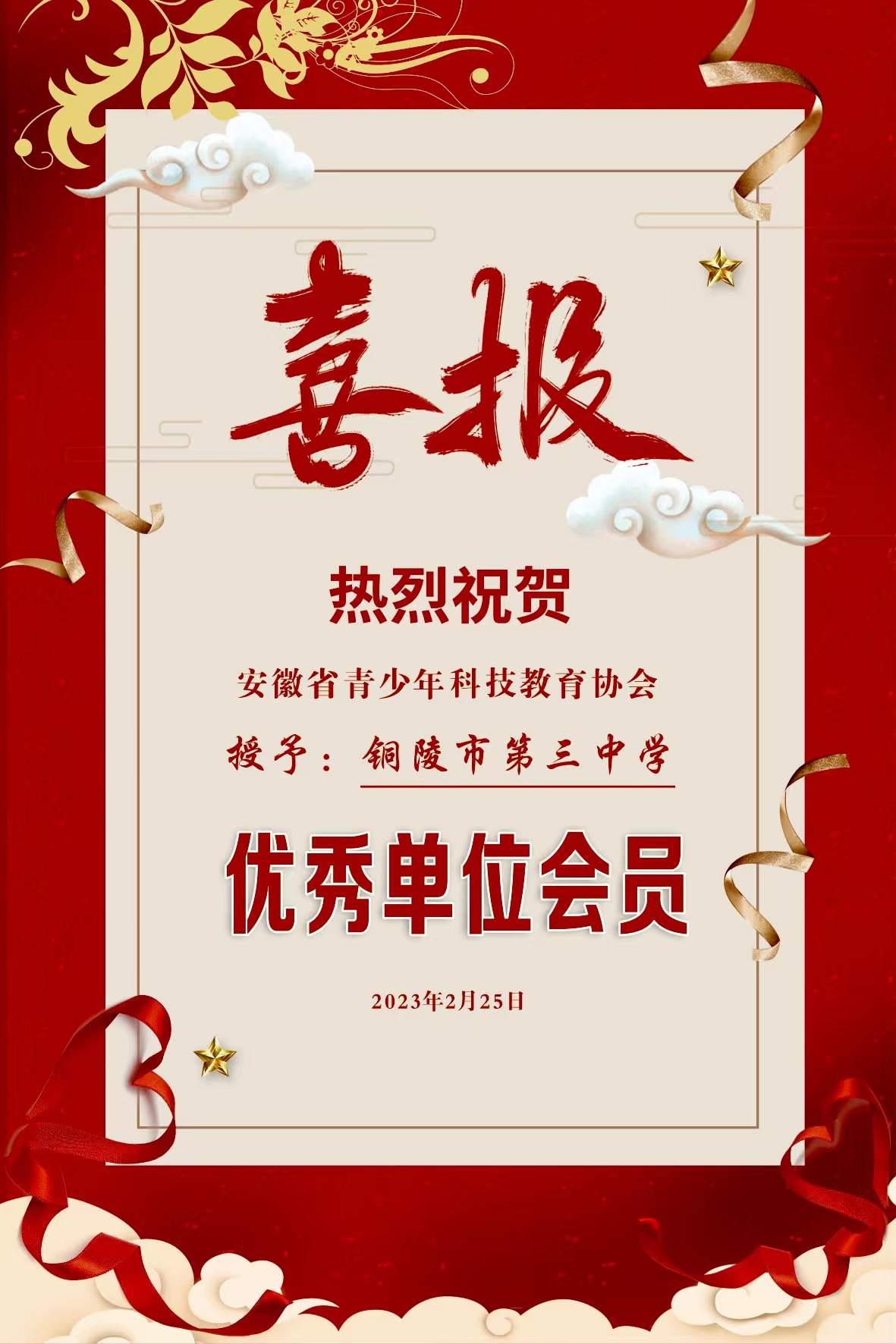 一元復始,萬象更新。春意盎然之際,我校迎來科技教育的喜訊。近日,銅陵市第三中學被安徽省青少年科技教育協(xié)會授予“優(yōu)秀單位會員”稱號。感謝銅陵市科學技術(shù)協(xié)會對我校青少年科技教育的專業(yè)指導,感謝銅陵市教育和體育局對我校青少年科技教育工作的殷切關(guān)懷。我校一直在深耕青少年科技教育園地,踔厲奮發(fā),培育國家棟梁。